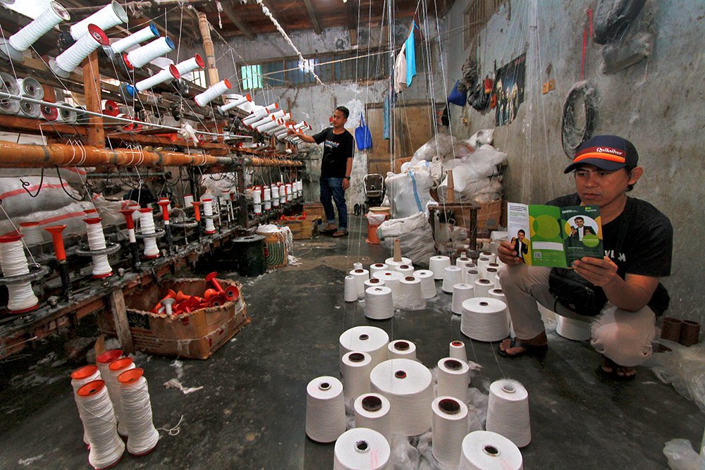 SinarHarapan.id – Pelaku UMKM pemintal benang mempelajari mekanisme dan tahapan untuk mendapatkan pembiayaan bagi Usaha Mikro Kecil dan Menengah (UMKM) di Kebayoran Lama, Jakarta, Senin (10/04/2023). PT Pegadaian (Persero) terus berinovasi untuk memberikan kemudahan pembiayaan bagi para pelaku UMKM yang menjadi pilar ekonomi nasional terus tumbuh. Sebab, UMKM merupakan salah satu sektor yang memberi kontribusi besar bagi perekonomian nasional. SHID/Ruht Semiono