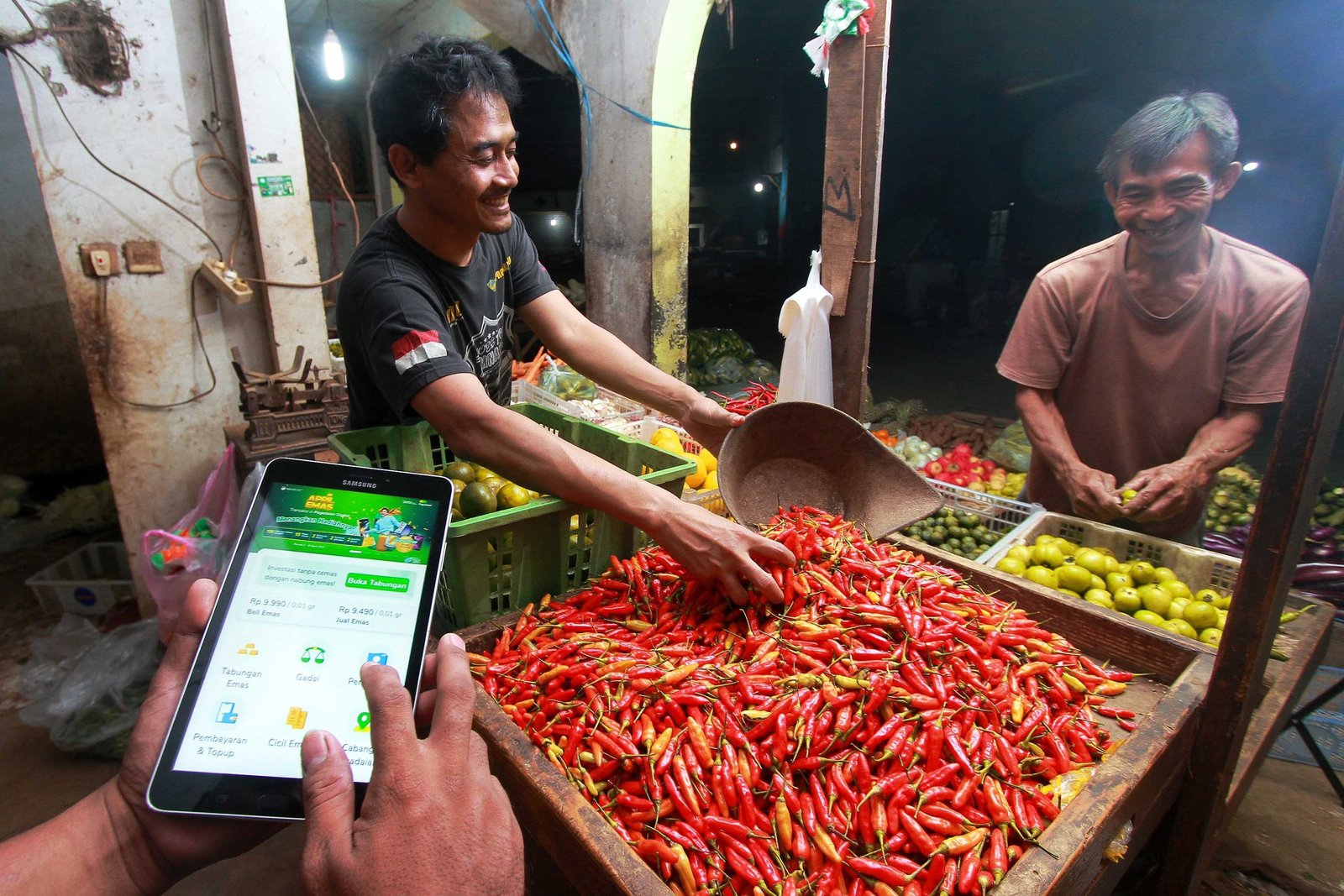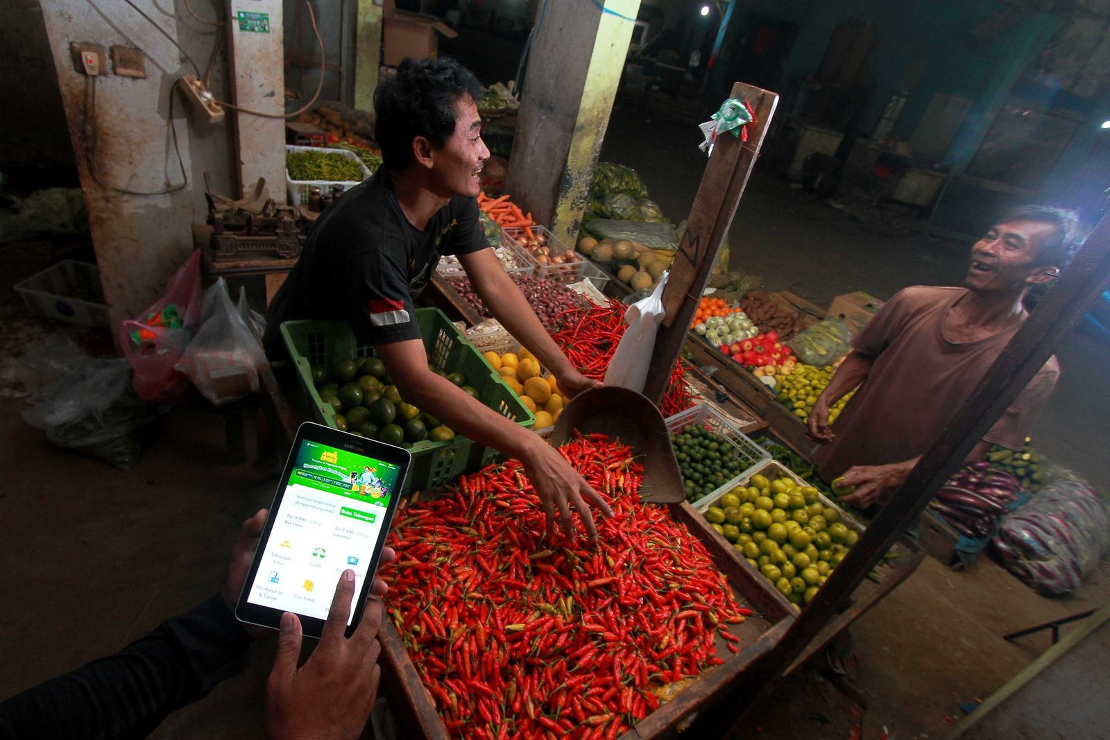 SinarHarapan.id – Pedagang camilan mempelajari mekanisme dan tahapan untuk mendapatkan pembiayaan bagi Usaha Mikro Kecil dan Menengah (UMKM) melalui aplikasi Pegadaian Digital, menyusul semakin meningkatnya pesanan jelang Hari Raya Idul Fitri, di Pasar CIedug, Tangerang, Banten, Senin (10/04/2023). PT Pegadaian (Persero) terus berinovasi untuk memberikan kemudahan pembiayaan bagi para pelaku UMKM yang menjadi pilar ekonomi nasional terus tumbuh. Sebab, UMKM merupakan salah satu sektor yang memberi kontribusi besar bagi perekonomian nasional. SHID/Ruht Semiono