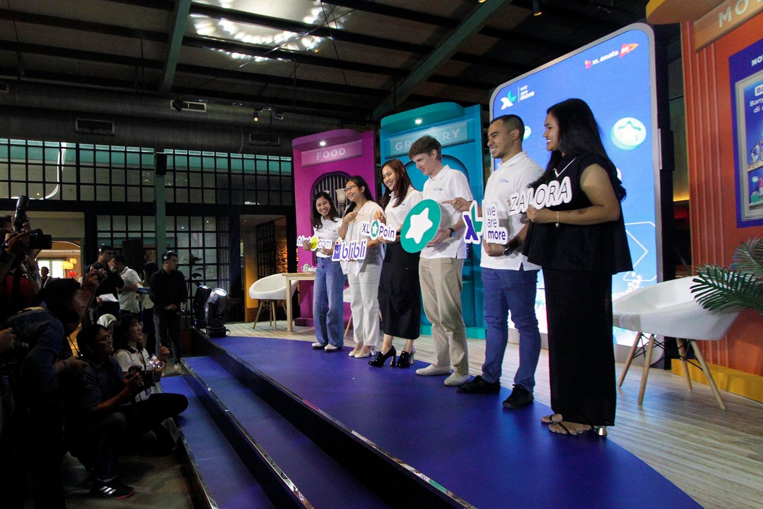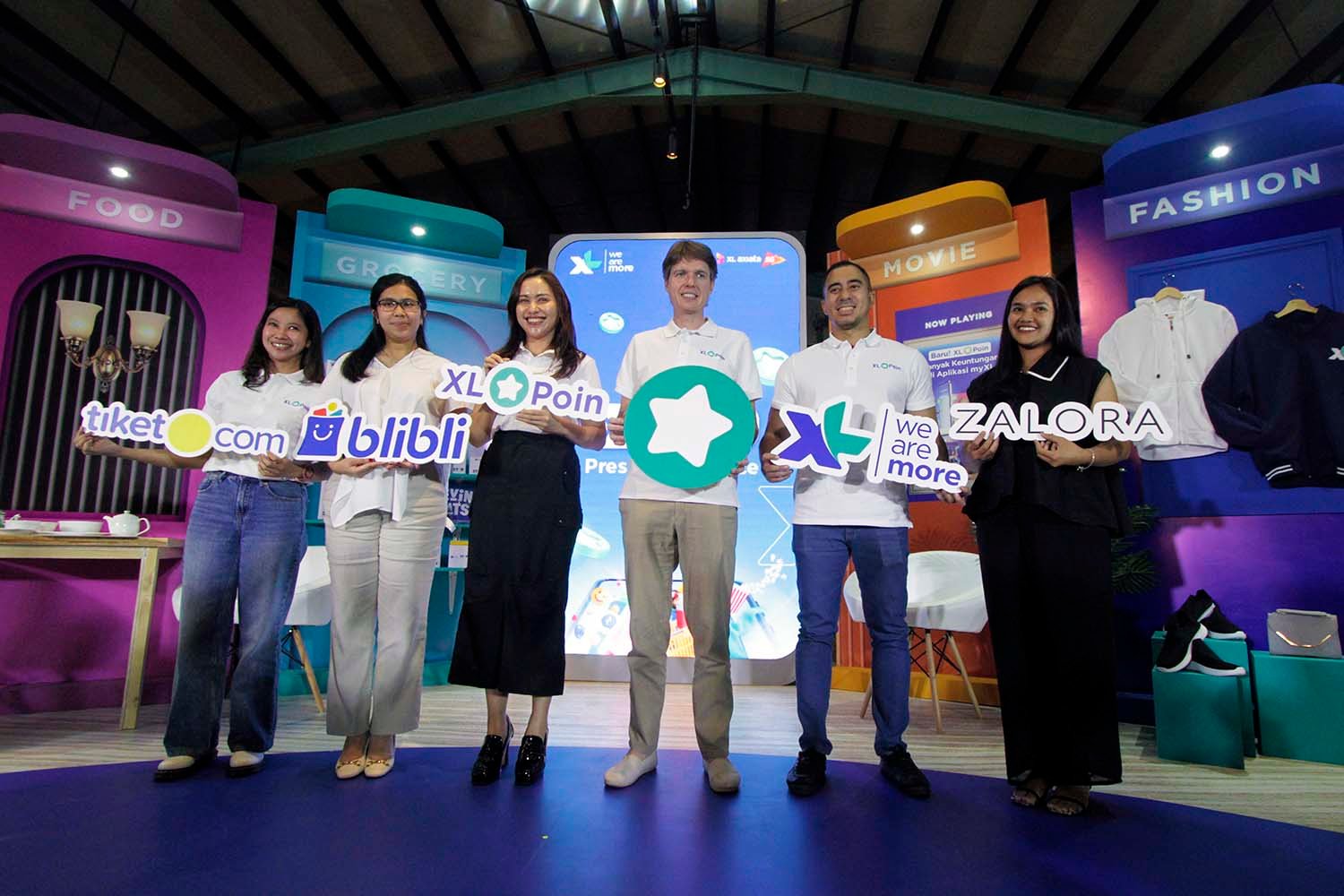 SinarHarapan.id – Head Consumer Proposition XL Axiata, Sri Sofyana Sugiarmadji, VP Partnership Blibli, Florence Ariani, Group Head Mass Segment XL Axiata, Lyra Filiola, Direktur & Chief Commercial Officer – Commerce XL Axiata, David Arcelus Oses, Group Head Corporate Communication XL Axiata, Reza Mirza dan Partnership Manager Zalora, Claudia Rosalia dalam acara peluncuran program XL Poin di Jakarta, Rabu (24/1/2024). Setiap pelanggan XL Prabayar yang melakukan transaksi baik melalui aplikasi myXL maupun saluran penjualan lainnya, secara otomatis akan mendapatkan poin. Tersedia benefit dan reward yang dapat dipilih pelanggan sesuai dengan poin yang ditukarkan, antara lain kuota internet, perpanjangan masa aktif dan pilihan voucher diskon di tempat belanja favorit hingga perjalanan liburan, seperti tiket.com, Blibli dan ZALORA. (Foto: SHID/Ruht Semiono)