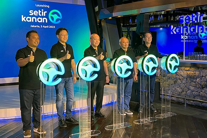 SinarHarapan.id – Project Executive of Setir Kanan Carolus Setjo Jatmika, Presiden Komisaris Astra Sedaya Finance Rudy Chen, Direktur Astra Suparno Djasmin, CEO Astra Credit Companies (ACC) Siswadi, Chief Marketing & Sales Officer ACC Tan Chian Hok saat melakukan Peluncuran Setir Kanan di Jakarta (4/4/2023). Setir Kanan merupakan brand dari PT Pratama Sadya Sadana, unit usaha terbaru dari Grup Astra yang menawarkan jual, beli dan tukar tambah mobil bekas dengan harga terjangkau dan sudah disertai paket kredit menarik dari Astra Credit Companies (ACC). Didukung 2 flagship store (Jakarta dan Denpasar) dan lebih dari 50 mini store di kantor cabang ACC di seluruh Indonesia untuk mempermudah pelanggan melihat mobil pilihannya secara langsung. Foto: SHID/Ruht Semiono