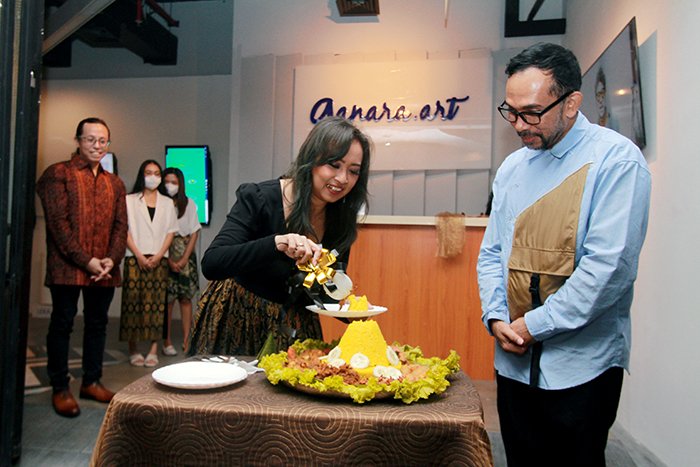 SinarHarapan.id – Founderi Ganara Art, Tita Djumaryo bersama Co-Founder Ganara Art Ranald Indra dan General Manajer Marketing Plaza Indonesia Zamri Mamat saat pembukaan Ganara Art di Plaza Indonesia, Selasa (14/3/2023). Dengan tema Modern Luxury Indonesian “Explore Indonesian Archipelago with a Touch of Arts”. Studio di Plaza Indonesia ini merupakan art space terluas yakni 1200 m2 dengan berbagai fasilitas yang bertujuan menawarkan pengalaman holistik dalam mengekspresikan diri lewat seni. Foto: SHID/Ruht Semiono