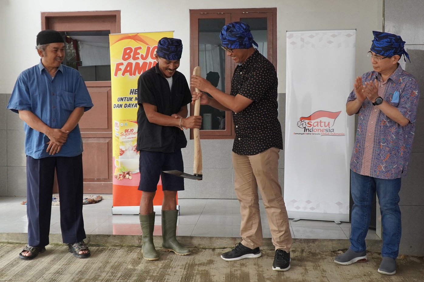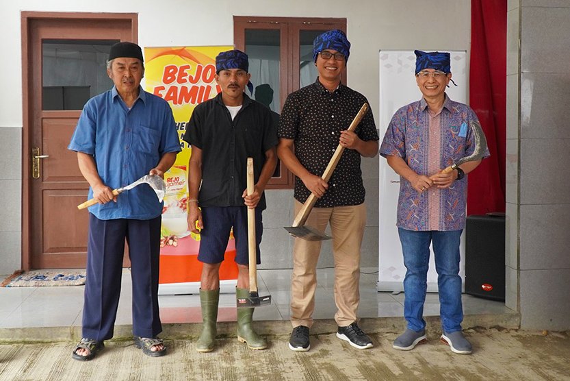 SinarHarapan.id – Penyerahan donasi alat pertanian oleh Ketua Yayasan Astra Honda Motor (YAHM) , Ahmad Muhibbuddin (kedua kanan) kepada perwakilan petani jahe merah dan serai wangi binaan Yayasan Dharma Bhakti Astra (YDBA) disaksikan oleh Ketua Pengurus YDBA, Sigit P. Kumala (kanan) pada akhir pekan lalu di Lebak, Banten. Penyerahan donasi alat pertanian berupa cangkul dan sabit yang diproduksi oleh UMKM Manufaktur binaan YDBA di Klaten dan Banyumas ini dilakukan sebagai dukungan YAHM terhadap pertanian di Indonesia. Foto:SHID/Ruht Semiono