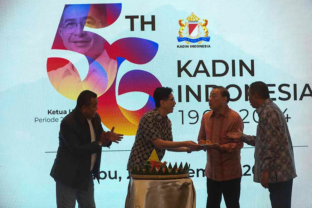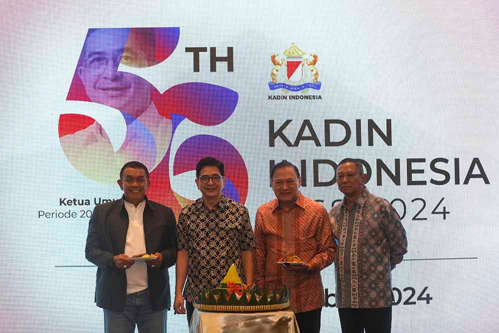 SinarHarapan.id – (dari kiri ke kanan) Ketua Umum Kadin Provinsi Jawa Barat, Cucu Sutara bersama Ketua Umum Kadin Indonesia, Arsjad Rasjid, Wakil Ketua Dewan Penasehat Kadin Indonesia, Agus Martowardojo dan WKU Bidang Industri Olahraga Kadin Indonesia, Irawadi D Hanafi saat membuka perayaan Hari Ulang Tahun Kadin Indonesia ke 56 di Jakarta. Ketua Kadin, Arsjad Rasjid, menegaskan bahwa sebagai motor penggerak ekonomi dan mitra strategis pemerintah, Kadin siap bekerja sama dengan presiden terpilih dan berkomunikasi intensif untuk menyusun whitepaper kebijakan ekonomi lima tahun ke depan, serta mendorong anggota tetap bersatu demi pertumbuhan ekonomi. Foto: SHID/Ruht Semiono