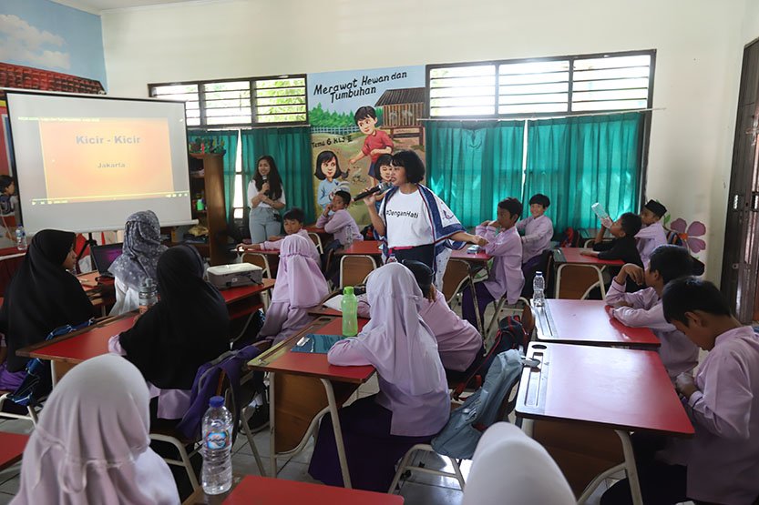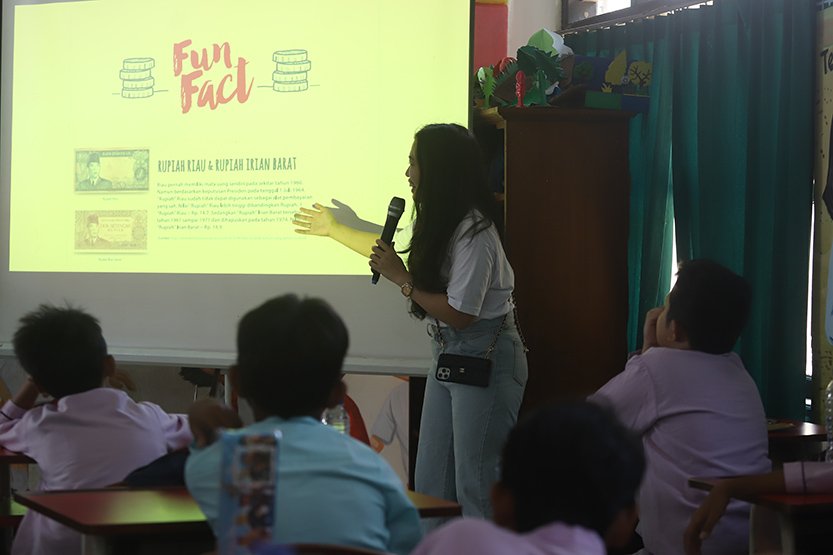 Sejumlah siswa mengikuti kelas literasi keuangan pada acara PermataBank CERITA di SDN Pondok Kacang Timur 04, Pd. Aren, Tangerang Selatan.