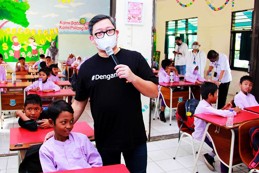 Direktur Human Resources PermataBank Dayan Sadikin saat kegiatan bersama siswa dalam kelas literasi keuangan pada acara PermataBank CERITA di SDN Pondok Kacang Timur 04, Pd. Aren, Tangerang Selatan.