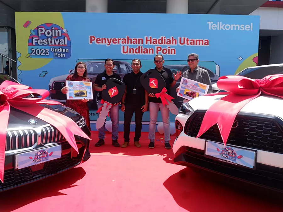 Telkomsel melanjutkan komitmennya dalam memberikan apresiasi kepada pelanggan setia dengan menyerahkan hadiah utama Undian Poin Festival 2023. Program ini telah berlangsung dari 1 November hingga 31 Desember 2023 dan bertujuan untuk memberikan penghargaan kepada pelanggan setia Telkomsel dan IndiHome atas loyalitas mereka. Pada kesempatan ini, Telkomsel menyerahkan 1 unit mobil BMW 320i kepada Kezia Natalia Holid, seorang ibu rumah tangga yang telah menjadi pelanggan setia Telkomsel selama 20 tahun. Foto: SHID/Istimewa