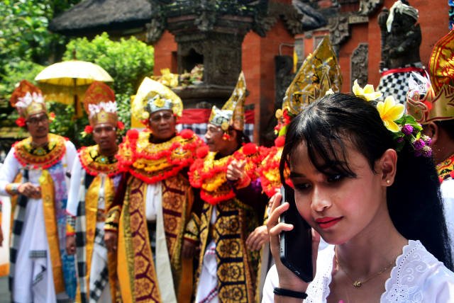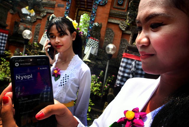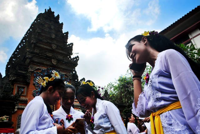 SinarHarapan.id – Warga umat hindu melakukan aktifitas dengan ponsel saat persiapan ibadah menyambut hari raya Nyepi di Cinere, Depok, Selasa (21/3/2023). PT. XL Axiata Tbk (XL Axiata) terus bergerak melanjutkan pembangunan infrastruktur jaringan telekomunikasi dan data ke wilayah pedesaan terpencil. Saat ini XL Axiata melayani lebih dari 57,9 juta pelanggan, yang diperkuat lebih dari 162 ribu BTS, termasuk lebih dari 77 ribu BTS 4G. Jaringan 4G LTE XL Axiata juga terus diperluas, dan sudah mencapai lebih dari 458 kota/kabupaten di berbagai wilayah di Indonesia. Foto SH/Elvis Sendouw