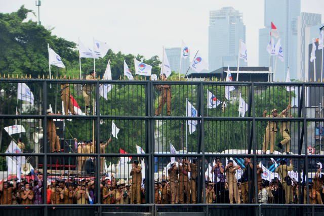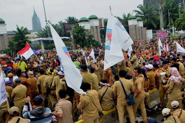 Ribuan Perangkat Desa Geruduk Gedung DPR RI
