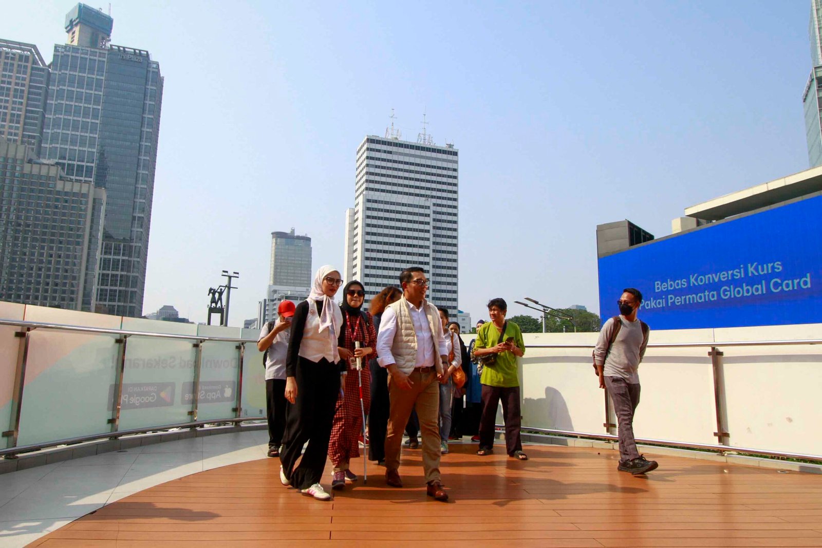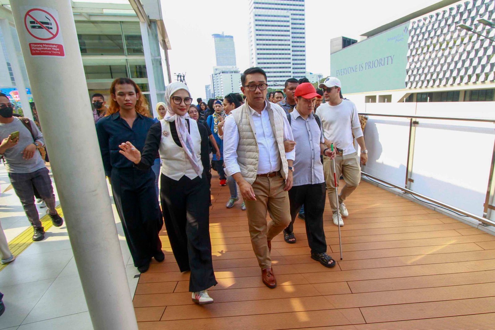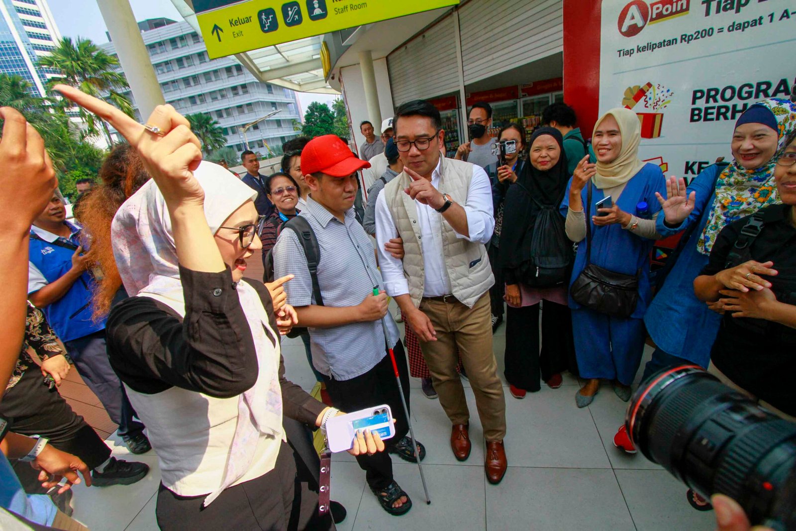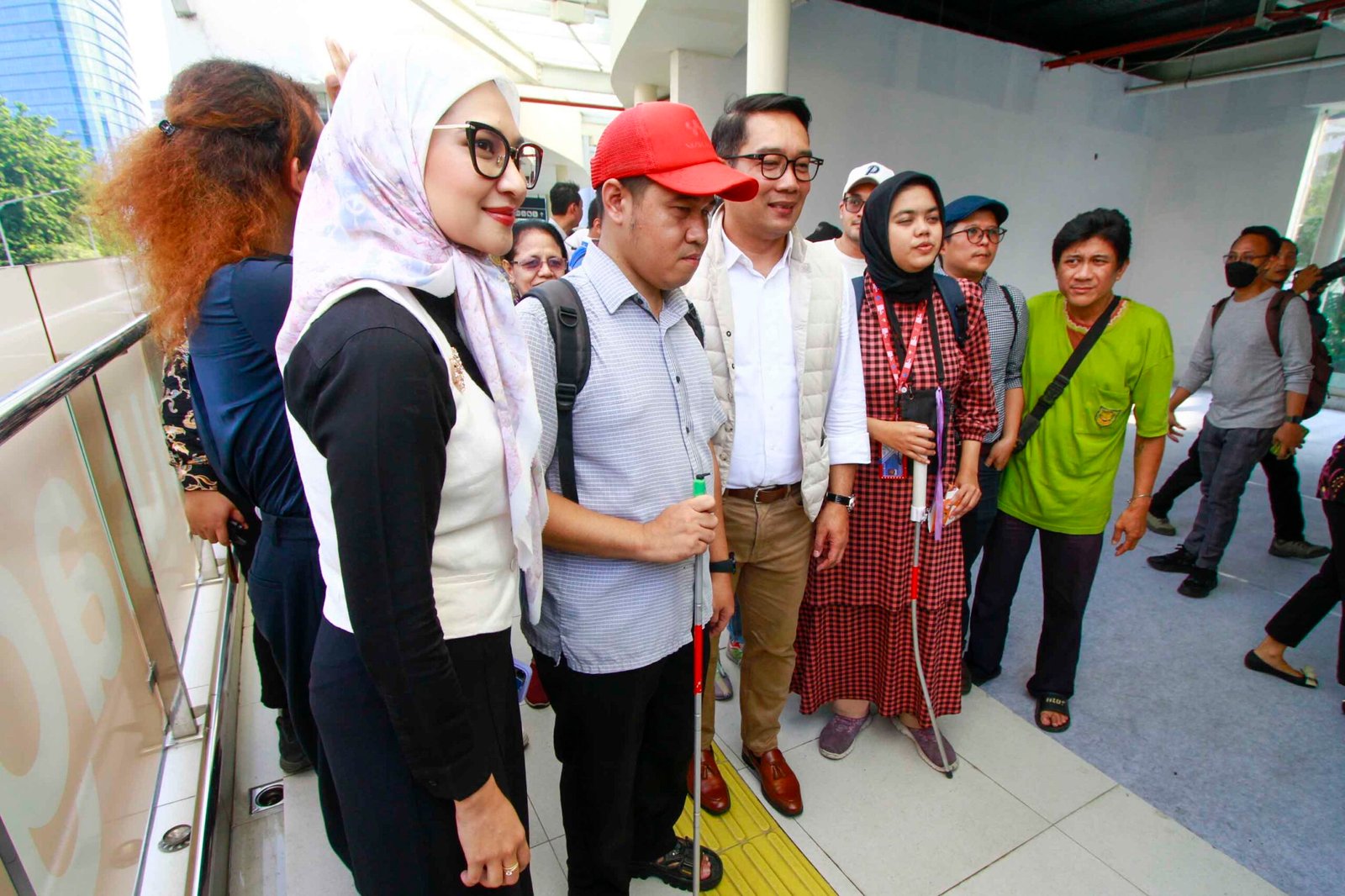 SinarHarapan.id – Bakal calon Gubernur DKI Jakarta Ridwan Kamil (tengah) berbincang dengan teman penyandang disabilitas saat kegiatan Jejak Langkah Inklusi RIDO bersama Teman Disabilitas di Halte Transjakarta Tosari, Jakarta, Jumat (13/9/2024). Kegiatan tersebut untuk meninjau akses teman disabilitas di tempat umum sekaligus mendengarkan aspirasi teman disabilitas. Foto: SHID