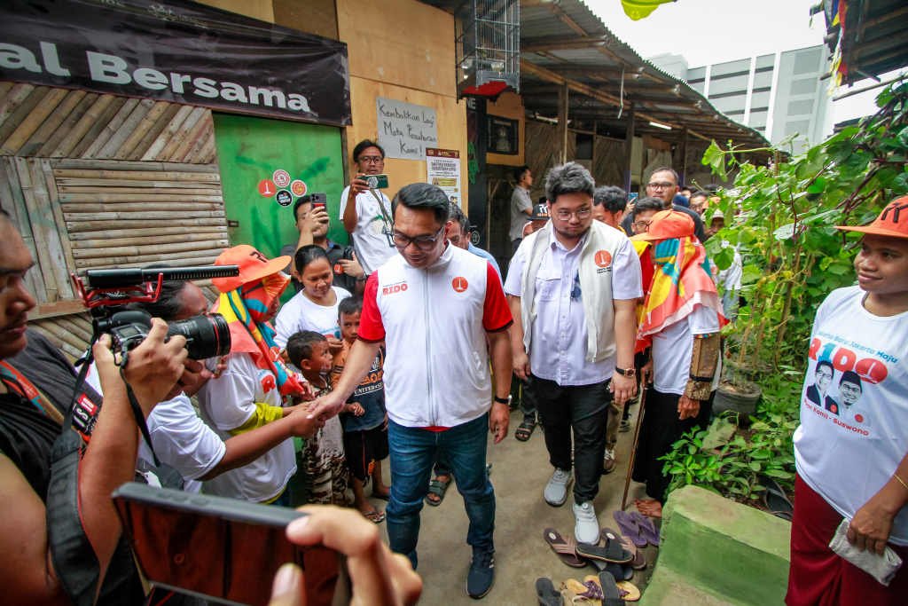 SinarHarapana.id – Cagub Jakarta nomor urut satu Ridwan Kamil saat blusukan dan menyapa warga Kampung Bayam di Pergudangan Krapau, Ancol, Jakarta Utara, Kamis (21/11/2023). Ridwan Kamil disambut hangat oleh warga Kampung Bayam, yang tampak antusias bertemu langsung dengan calon pemimpin masa depan Jakarta tersebut. Dalam kunjungan ini, ia menyempatkan diri berinteraksi dengan warga, mendengarkan aspirasi, dan memberikan solusi untuk permasalahan yang mereka hadapi.