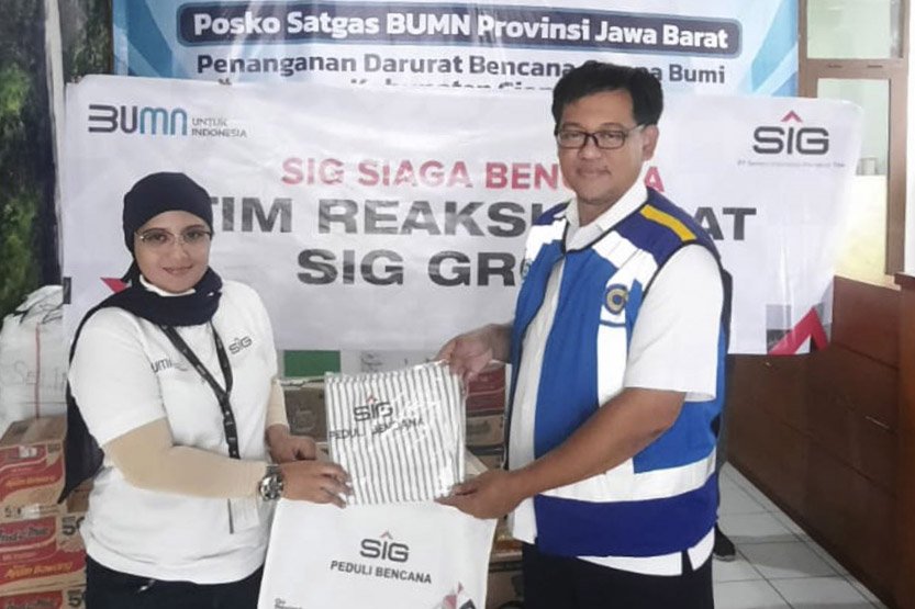 SinarHarapan.id – Lovy Nurmita Sari, Department of CSR SIG, menyerahkan bantuan paket sembako dan kebutuhan pokok lainnya kepada perwakilan Satgas BUMN Jawa Barat, Tatang Kusdiana di Posko Satgas BUMN Jawa Barat, Kabupaten Cianjur, Jawa Barat. PT Semen Indonesia (Persero) Tbk (SIG) bersama anak perusahaannya, bergerak cepat membantu melakukan evakuasi dan memberikan pertolongan kepada korban terdampak bencana gempa di Cianjur, Jawa Barat. Melalui Tim Reaksi Cepat (TRC) dari PT Semen Padang dan PT Semen Tonasa, SIG bekerja sama dengan Badan Penanggulangan Bencana Daerah (BPBD) Kabupaten Cianjur dan masuk dalam tim rescue yang membantu melakukan evakuasi dan memberikan pertolongan kepada para korban, serta memberikan assessment terkait kebutuhan di lokasi bencana.
