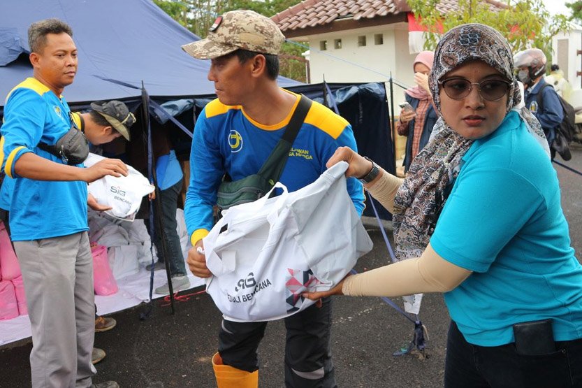Selain TRC, SIG juga memberikan bantuan paket sembako dan kebutuhan pokok lainnya. Paket sembako berisi 5 kg beras, 1 liter minyak goreng, 8 pcs mie instan, 4 pcs biskuit, dan 1 pcs selimut. Unit usaha SIG, PT Solusi Bangun Indonesia Tbk (SBI) juga memberikan bantuan paket sembako, selimut, senter, popok dan pembalut wanita, kaos kaki, makanan siap saji (ransum) dan makanan bayi, pispot, terpal ukuran 4×6, serta paket obat-obatan. Bantuan diserahkan secara bertahap mulai Rabu (23/11) di Posko Satgas BUMN Provinsi Jawa Barat, Kantor Perum Perhutani, Kabupaten Cianjur. Foto: SH/Ruht Semiono