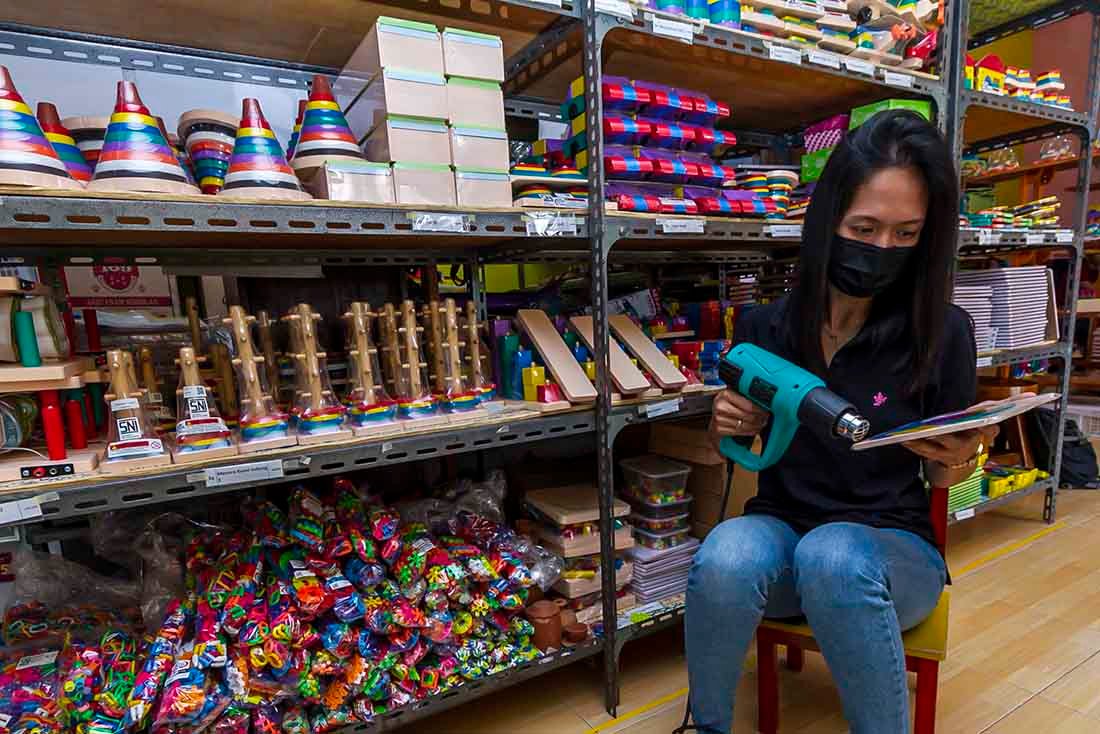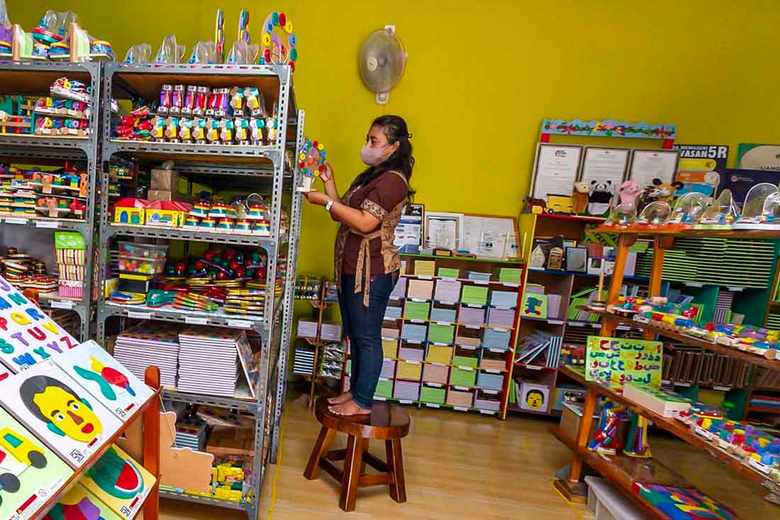 Rita Indriana, pemilik ABC Woodentoys, masih mengingat bagaimana gempa besar yang melanda Yogyakarta tahun 2006 hampir memutus langkahnya. Kemudian saat pandemi Covid-19 melanda. Sekolah-sekolah tutup, bazar berhenti, dan penjualan merosot tajam.