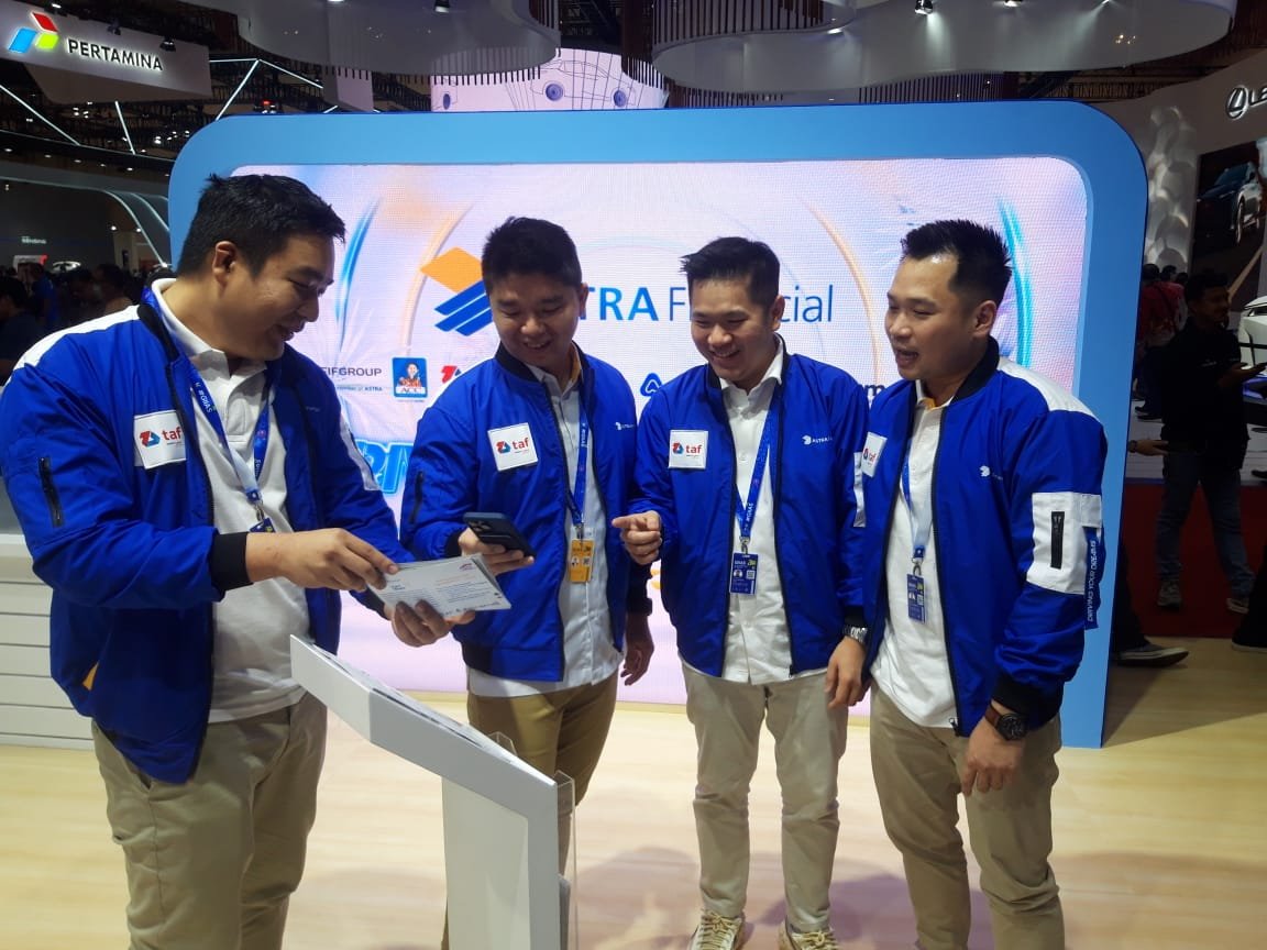 SinarHarapan.id – Marketing and Sales Director PT Toyota Astra Financial Services (TAF) Budi Setiawan (kedua dari kiri) bersama dengan jajaran pimpinan kantor cabang TAF, memperagakan aktivitas digital di booth utama Astra Financial di acara GIIAS 2023 yang berlangsung 10-20 Agustus 2023.