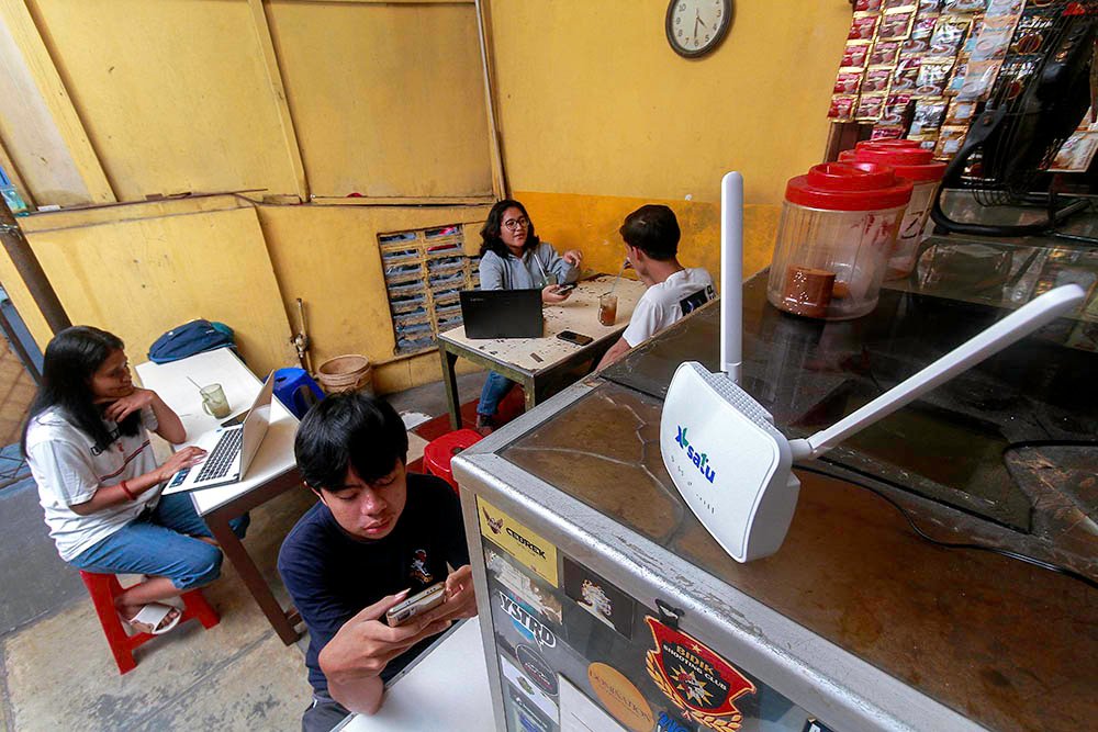 SinarHarapa.id – Sejumlah pengunjung mamanfaatkan jaringan wifi gratis yang disediakan warung kopi menggunakan modem XL Satu Lite di Tangerang Selatan, Banten, baru-baru ini. XL Axiata serius memperkuat dan memperluas jaringan khususnya di luar Jawa dengan pengeluaran belanja modal (capex) sebesar total Rp 9 triliun. Hingga akhir 2022, total jumlah BTS (2G & 4G) XL Axiata mencapai 144.768 BTS, dengan jumlah BTS 4G sebanyak 91.632 unit. Jumlah BTS 4G ini meningkat 19 persen dibandingkan periode yang sama tahun sebelumnya, dengan tingkat keterhubungan dengan jaringan fiber optik mencapai 54 persen (fiberized). Foto: SHID/Ruht Semiono