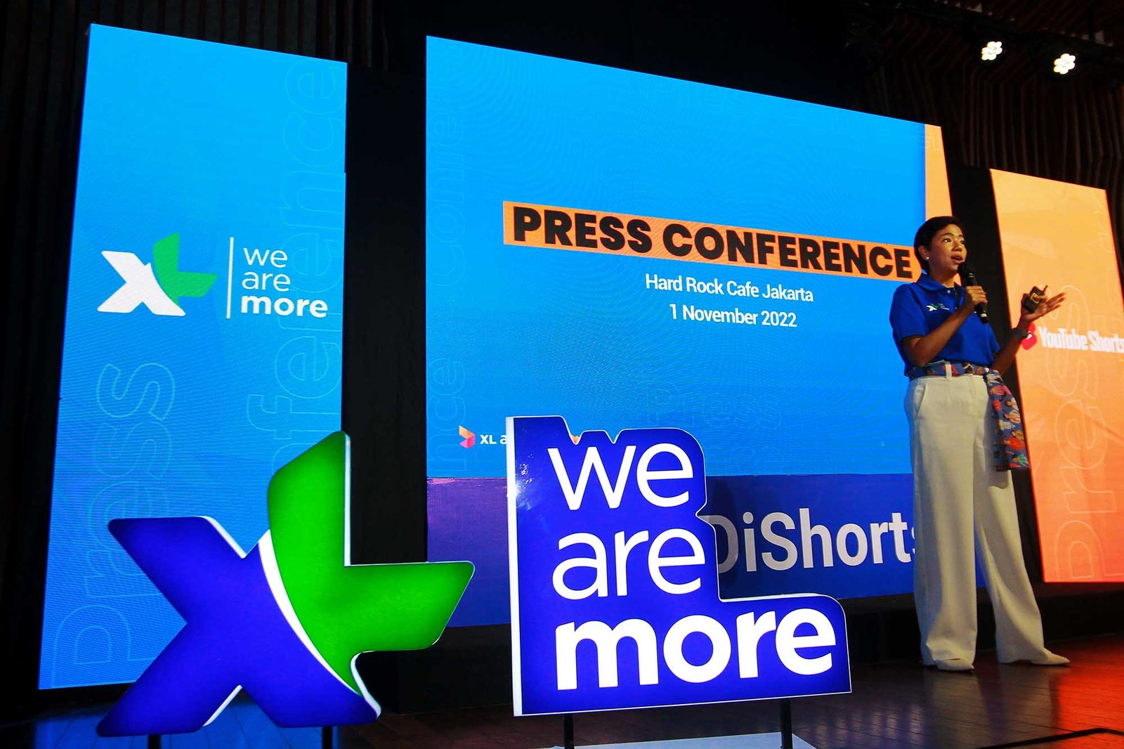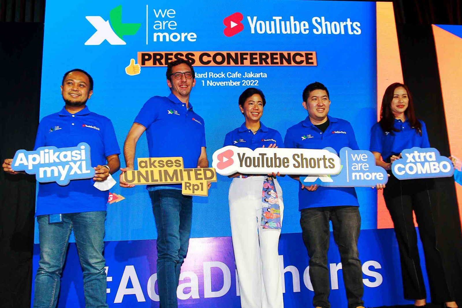 SinarHarapan.id – Direktur and Chief Digital Transformation & Enterprise Business Officer XL Axiata Yessie D Yosetya (tengah) berbincang dengan Chief Marketing Officer XL Axiata Alfons Bosch Sansa (kedua kiri), Country Head YouTube Indonesia Suwandi Widjaja (kedua kanan), Group Head Mass Segment XL Axiata Lyra Filiola (kanan), dan Head Strategic Operation & Automation XL Axiata Ahmad Hamzah (kiri) dalam acara peluncuran Unlimited YouTube Shorts, di Jakarta, Selasa (1/11/2022). XL berkolaborasi dengan YouTube menghadirkan program “Unlimited YouTube Shorts” dengan harga Rp1, pelanggan bisa mengakses YouTube Shorts sepuasnya selama satu jam yang bisa didapatkan satu kali per minggu melalui aplikasi myXL. Layanan streaming menjadi salah satu aplikasi yang paling banyak diakses oleh pelanggan XL Axiata. Tercatat, lebih dari 50% pengguna XL Axiata mengakses Youtube secara aktif, sehingga memberi kontribusi paling besar pada trafik data XL Axiata. Kontribusi streaming utamanya Youtube bahkan mencapai hingga 70%. Foto: SH/Ruht Semiono