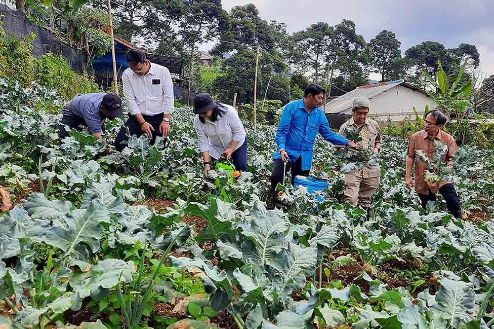 SinarHarapan.id – Ketua Pengurus Yayasan Dharma Bhakti Astra (YDBA), Sigit P. Kumala (kanan) bersama Sekretaris Pengurus YDBA, Ida R. M. Sigalingging (ketiga kiri), Bendahara Pengurus YDBA, Handoko Pranoto (kedua kanan), Direktur Kerjasama Pendanaan dan Pembiayaan Pusat Investasi Pemerintah (PIP), Kementerian Keuangan RI, Muhammad Yusuf (kedua kiri), Offtaker Petani Binaan, Budiarto (ketiga kanan) serta Petani Binaan YDBA dan PIP, Elan (kiri) saat melakukan penyemprotan MOL (Mikro Organisme Lokal) sebagai pupuk organik dalam budidaya pertanian untuk membasmi bakteri pada tanaman yang sedang dibudidayakan oleh para petani. Penyemprotan ini dilakukan saat Soft Launching Program Pembinaan UMKM di Wilayah Puncak Dua, Jawa Barat. MOL tersebut merupakan hasil program pembinaan dasar yang dilakukan YDBA berkolaborasi dengan PIP sejak Agustus 2022 lalu. Kolaborasi tersebut diharapkan dapat meningkatkan kompetensi petani dalam berbudidaya organik dan berdampak pada peningkatan ekonomi di wilayah tersebut. Foto: SH/Ruht Semiono